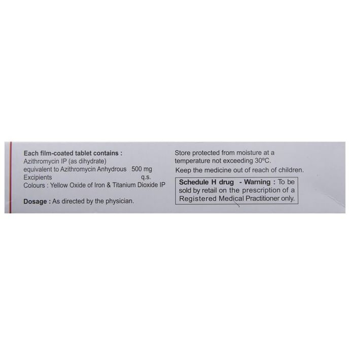 Q. Is Azithral 500 Tablet safe?::: Azithral 500 Tablet is safe if used at prescribed doses for the prescribed duration as advised by your doctor.| Q. What if I don't get better?::: You should inform your doctor if you do not notice any improvement in your symptoms after 3 days of taking Azithral 500 Tablet. Also, if your symptoms get worse, inform your doctor immediately.| Q. Can the use of Azithral 500 Tablet cause diarrhea?::: Yes, the use of Azithral 500 Tablet can cause diarrhea. It is an antibiotic which kills the harmful bacteria. However, it also affects the helpful bacteria in your stomach or intestine and causes diarrhea. If you are experiencing severe diarrhea, talk to your doctor about it.| Q. Can Azithral 500 Tablet be taken at night?::: Azithral 500 Tablet is usually prescribed once daily. You can take it at any time of the day, but remember to take it at the same time each day. The medicine should be taken 1 hour before meals or 2 hours after eating food. You can take the tablet preparation with or without food. However, you must take Azithral 500 Tablet exactly as advised by your doctor and ask your doctor if you have any doubts.| Q. How long does it take Azithral 500 Tablet to work?::: Azithral 500 Tablet starts working within a few hours of taking it. You may notice an improvement in symptoms after a few days. Do not stop taking the medicine without completing the course mentioned by your doctor. Stopping the medicine without consulting your doctor may cause the infection to come back which may be more difficult to treat.| Q. Why is Azithral 500 Tablet given for 3 days?::: The duration of treatment depends on the type of infection being treated and the age of the patient. Azithral 500 Tablet is not necessarily given for 3 days. In most bacterial infections, a single dose of 500 mg is given for 3 days. Alternatively, it can be given as 500 mg once on day 1 and then 250 mg once from day 2 to day 5. In some cases of infection such as genital ulcer disease, it is given as a single 1 gram dose. Therefore, you must stick to the regime advised by your doctor.| Q. What should I avoid while taking Azithral 500 Tablet?::: Generally, it is recommended that patients taking Azithral 500 Tablet should avoid taking any antacid with this medicine as this can affect the overall effectiveness of Azithral 500 Tablet. It is also recommended to avoid exposure to sunlight or tanning beds as Azithral 500 Tablet increases the risk of sunburn.| Q. Is Azithral 500 Tablet a strong antibiotic?::: Azithral 500 Tablet is an effective antibiotic that is used for the treatment of many bacterial infections. Compared to other antibiotics, Azithral 500 Tablet has a longer half-life which means that it stays in the body for a long time because of which it is given once a day and for a short span of time. Other antibiotics comparatively have a shorter half-life and are usually given twice, thrice, or four times a day.| Q. Can you get a yeast infection from taking Azithral 500 Tablet?::: Some people may get a fungal or yeast infection known as thrush after taking Azithral 500 Tablet. Antibiotics such as Azithral 500 Tablet can kill the normal or ‘good bacteria’ of your intestine responsible for preventing thrush. You should inform your doctor if you get a sore or vaginal itching or discharge. Also, inform your doctor if you get a white patch in the mouth or tongue after taking Azithral 500 Tablet or soon after stopping it.| Q. Why is Azithral 500 Tablet given for 3 days?::: The duration of treatment depends on the type of infection being treated and the age of the patient. Azithral 500 Tablet is not necessarily given for 3 days. In most bacterial infections, a single dose of 500 mg is given for 3 days. Alternatively, it can be given as 500 mg once on day 1 and then 250 mg once from day 2 to day 5. In some cases of infection such as genital ulcer disease, it is given as a single 1 gram dose. Therefore, you must stick to the regime advised by your doctor.| Q. What should I avoid while taking Azithral 500 Tablet?::: Generally, it is recommended that patients taking Azithral 500 Tablet should avoid taking any antacid with this medicine as this can affect the overall effectiveness of Azithral 500 Tablet. It is also recommended to avoid exposure to sunlight or tanning beds as Azithral 500 Tablet increases the risk of sunburn.| Q. Is Azithral 500 Tablet a strong antibiotic?::: Azithral 500 Tablet is an effective antibiotic that is used for the treatment of many bacterial infections. Compared to other antibiotics, Azithral 500 Tablet has a longer half-life which means that it stays in the body for a long time because of which it is given once a day and for a short span of time. Other antibiotics comparatively have a shorter half-life and are usually given twice, thrice, or four times a day.| Q. Can you get a yeast infection from taking Azithral 500 Tablet?::: Some people may get a fungal or yeast infection known as thrush after taking Azithral 500 Tablet. Antibiotics such as Azithral 500 Tablet can kill the normal or ‘good bacteria’ of your intestine responsible for preventing thrush. You should inform your doctor if you get a sore or vaginal itching or discharge. Also, inform your doctor if you get a white patch in the mouth or tongue after taking Azithral 500 Tablet or soon after stopping it.